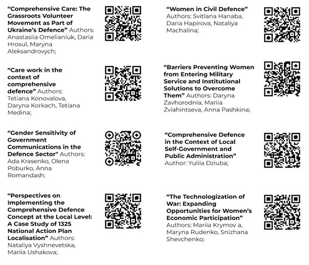 Актуальність всеохопної оборони в Україні очевидна: перемога України у війні вимагає проведення реформ у сфері оборони та пошуку новаторських рішень у цивільному житті, які сукупно забезпечать стійку і комплексну безпекову стратегію. В умовах постійних атак РФ на цивільне населення, дефіциту кадрів у війську та загальної ресурсної асиметрії питання безпеки країни не може обмежуватися лише військовим складником. В обраних для проєкту «Гендерний підхід в контексті всеохопної оборони» сферах досліджень — волонтерський рух, доглядова праця, жінки в армії, жінки в цивільній обороні, економіка, місцеве самоврядування, інформаційна політика — дослідниці пропонують рішення, що синергетично підсилюють стійкість суспільства в тилу та його оборонні можливості на фронті.