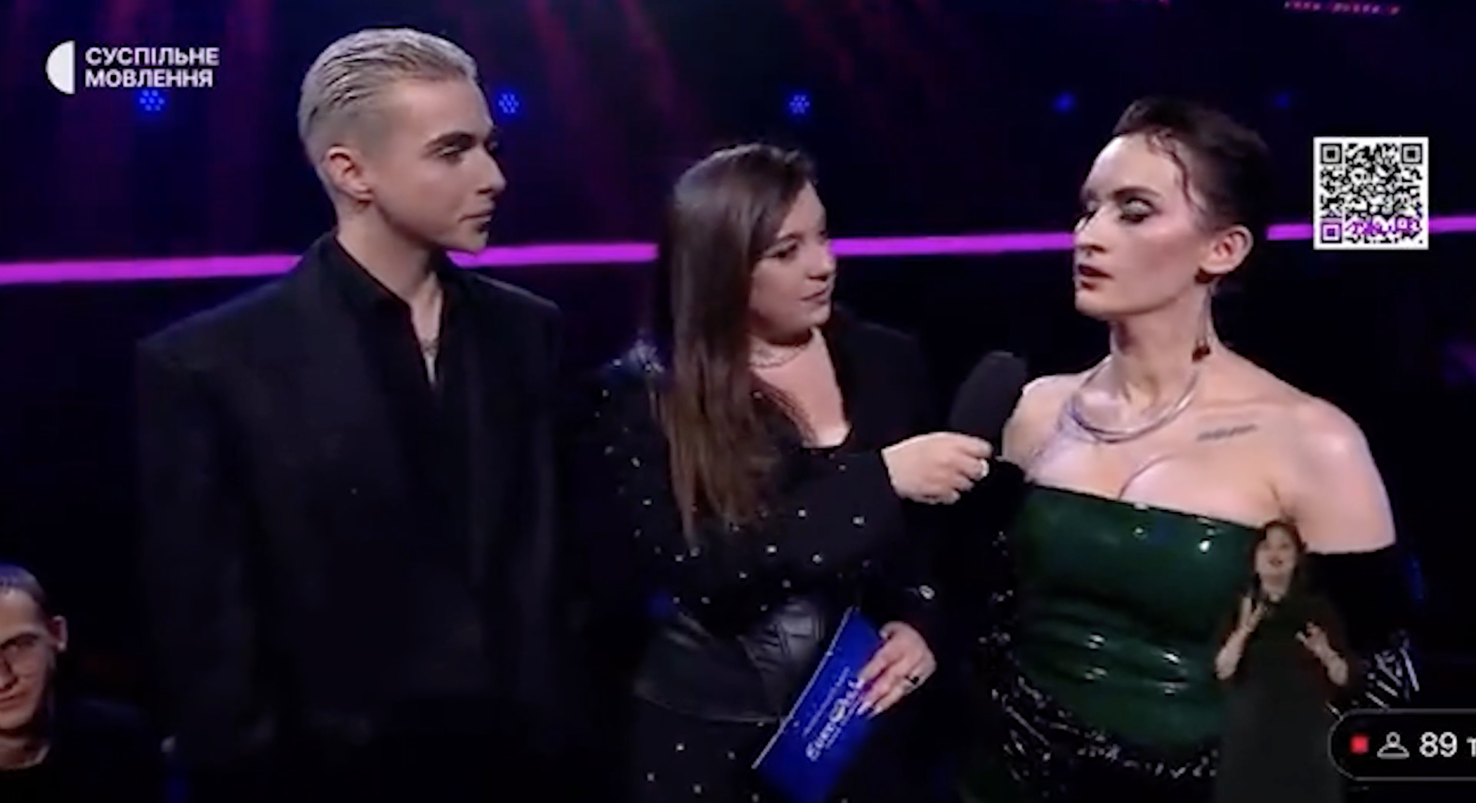 «До мене два краші приєдналися, це членкиня журі Катерина Павленко і головний дример країни Melovin... Як вам тут атмосфера?», – звернулася під час ефіру до зірок Тульєва.