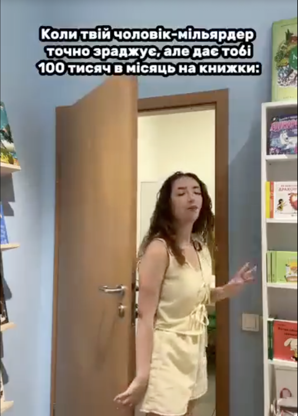 «Коли чоловік-мільярдер тобі зраджує, але дає 100 тис. грн в місяць на книжки», – підписали відео.