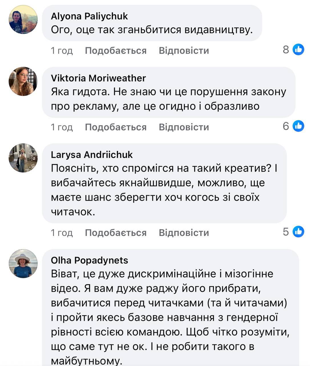 Цю рекламу розкритикували в соцмережах із вимогою вибачень від видавництва та порадою пройти навчання з гендерної рівності.