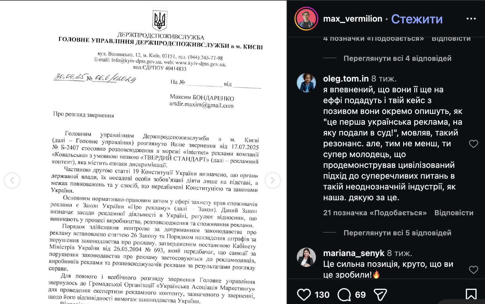А ось це чудовий приклад того, якими необхідними були зміни в Законі України «Про рекламу» щодо сексизму. Адже про цю рекламу ми дізналися не з білбордів, а від Держпродспоживслужби і одразу з результатами – сіті-лайт демонтували, а на підприємця наклали штраф у розмірі пʼятикратної вартості розповсюдженої реклами.